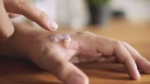 Thermal, chemical, or electrical burns that destroy skin layers. Second-degree burns involve deeper layers and may require specialized care. Third-degree burns destroy full skin thickness.